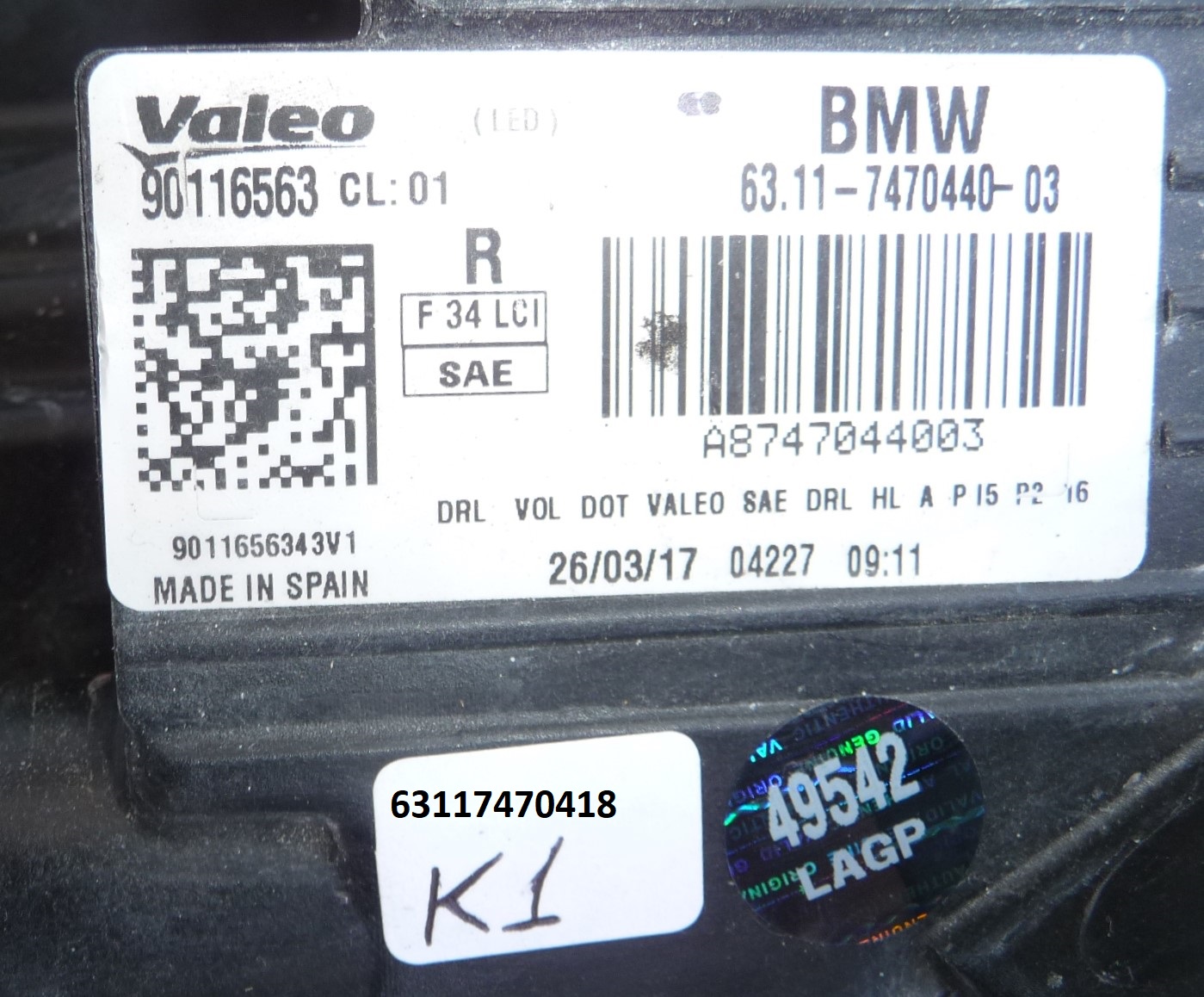 2017-2019 BMW F34 LCI 340i GT Right LED Headlight W/O Adaptive 63117470418 OEM