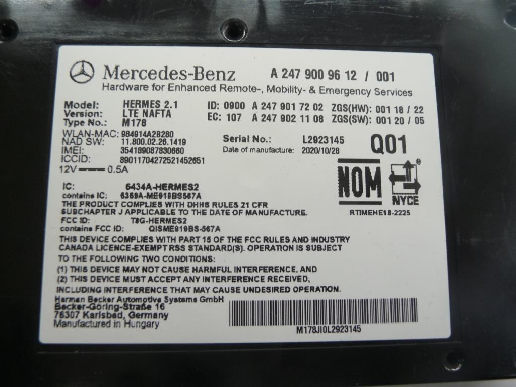 2018-2021 Mercedes Benz W177 W247 Telematics Control Unit A1779000909 OEM A1