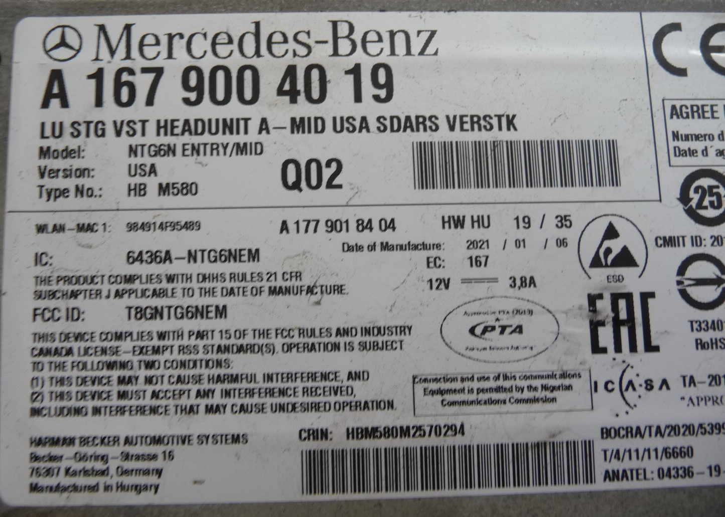 2020 Mercedes Benz GLE350 GLE450 Radio Control Unit A1679004019 OEM A1