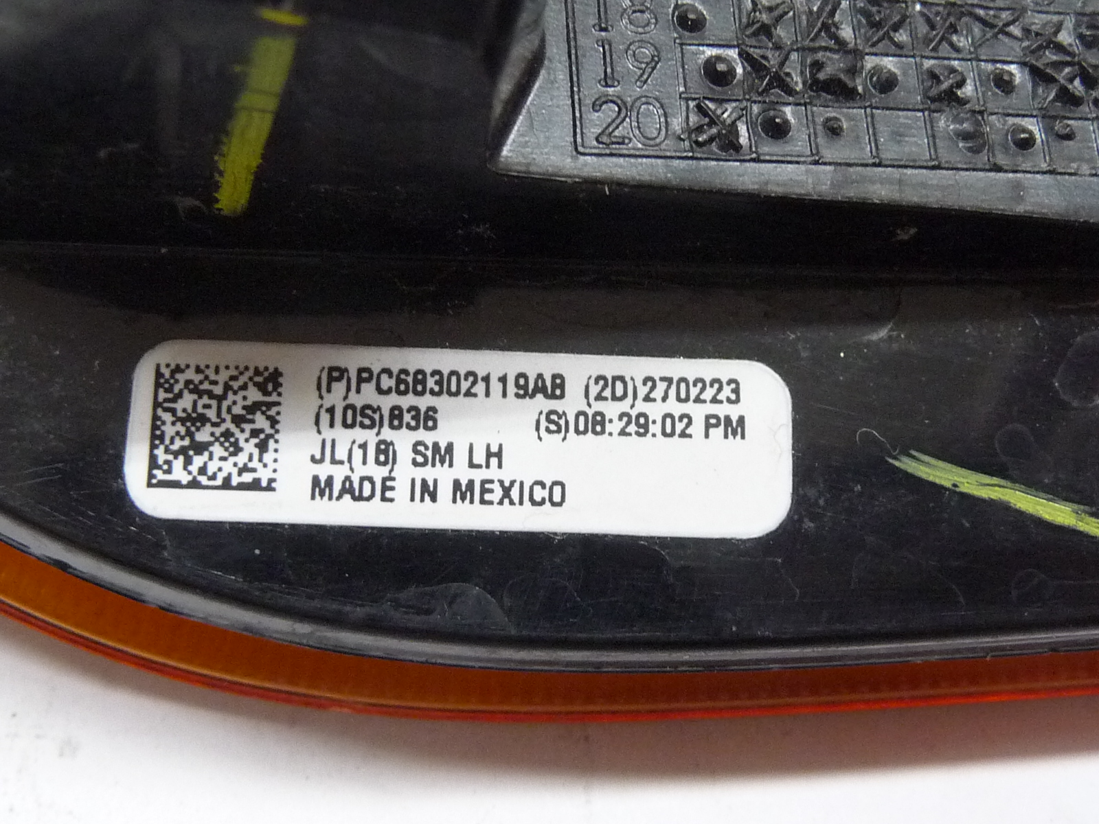07-18 Jeep Wrangler Left Driver Rear Taillight Lamp Assemby 55077891A OEM