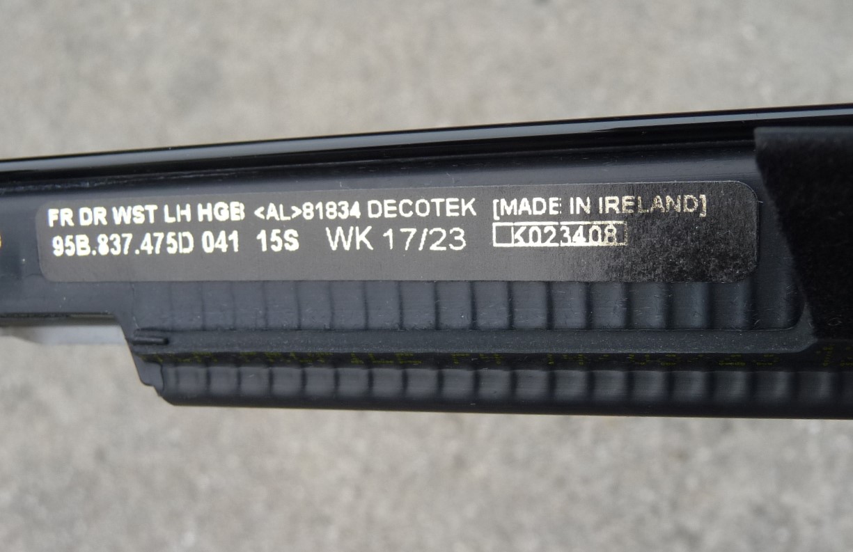 2015-2023 Porsche Macan Front Left Door Belt Molding 95B837475D OEM A1