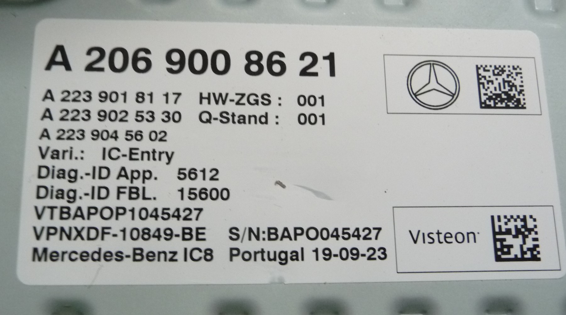 2021-2024 Mercedes Benz W206 Front Camera Control Unit A2069000920 OEM A1