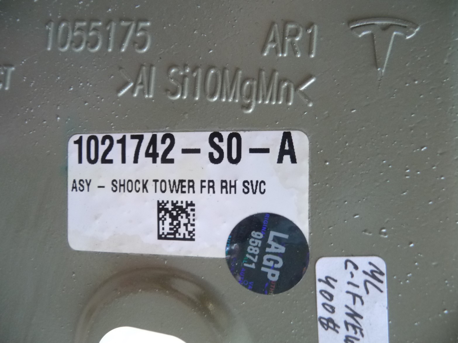 12-16 Tesla Model S Front Shock Tower Extension Right Passenger 6008069-S0-B OEM