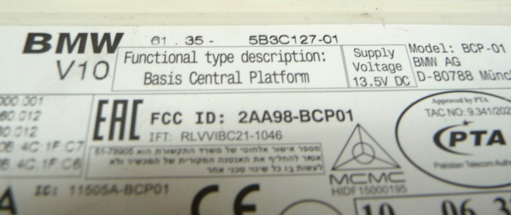 2022 2023 2024 2025 BMW 530i 740i i5 iX X1 X2 X5 X6 X7 Basic Computing Platform BCP Control Unit