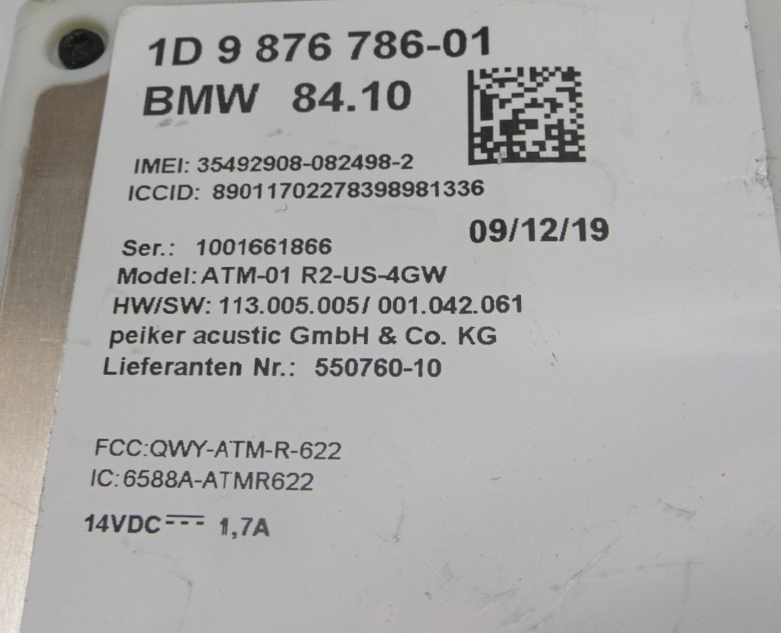 2017 2018 2019 2020 2021 2022 BMW G20 F36 G30 Telematics Control Unit Module