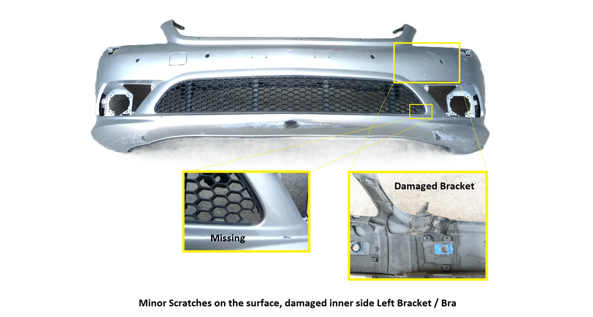 Used, Solid surface, some scratches on the surface - Damaged inner side left driver side bracket / Bra