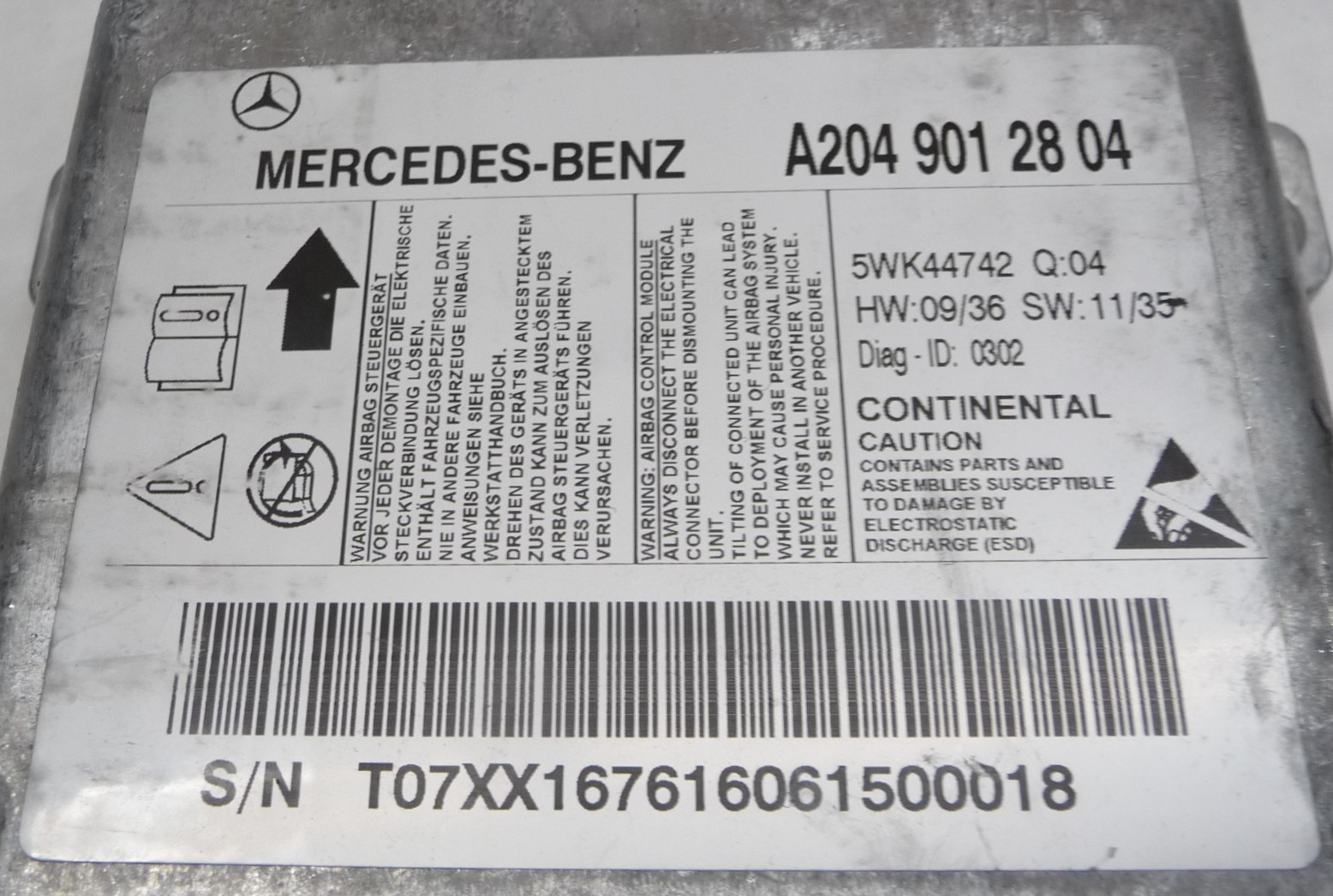 2008-2011 Mercedes Benz W204 C300 C350 Airbag Control Module A2048206685 OEM