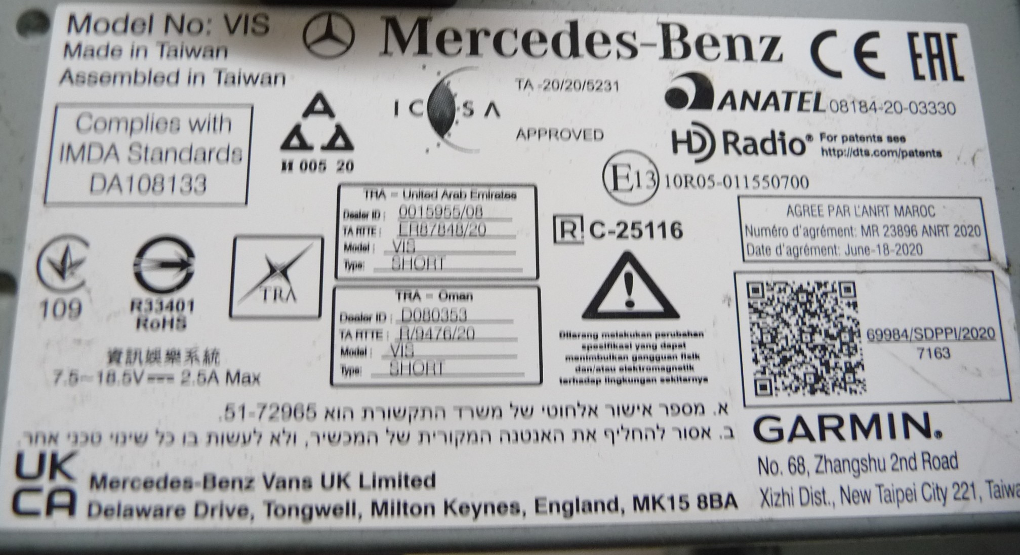 2020 2021 2022 Mercedes Benz Metris Radio Control Unit