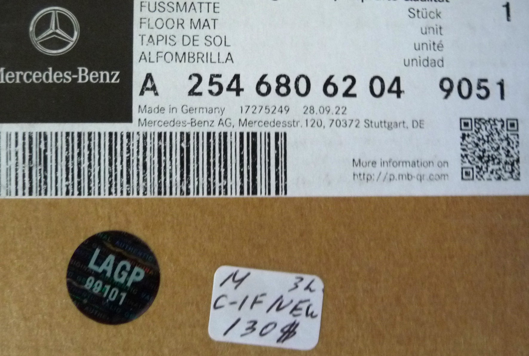 2016-2026 Mercedes Benz GLC300 Floor Mat, Set of 4 A2546806204 9051 OEM A1