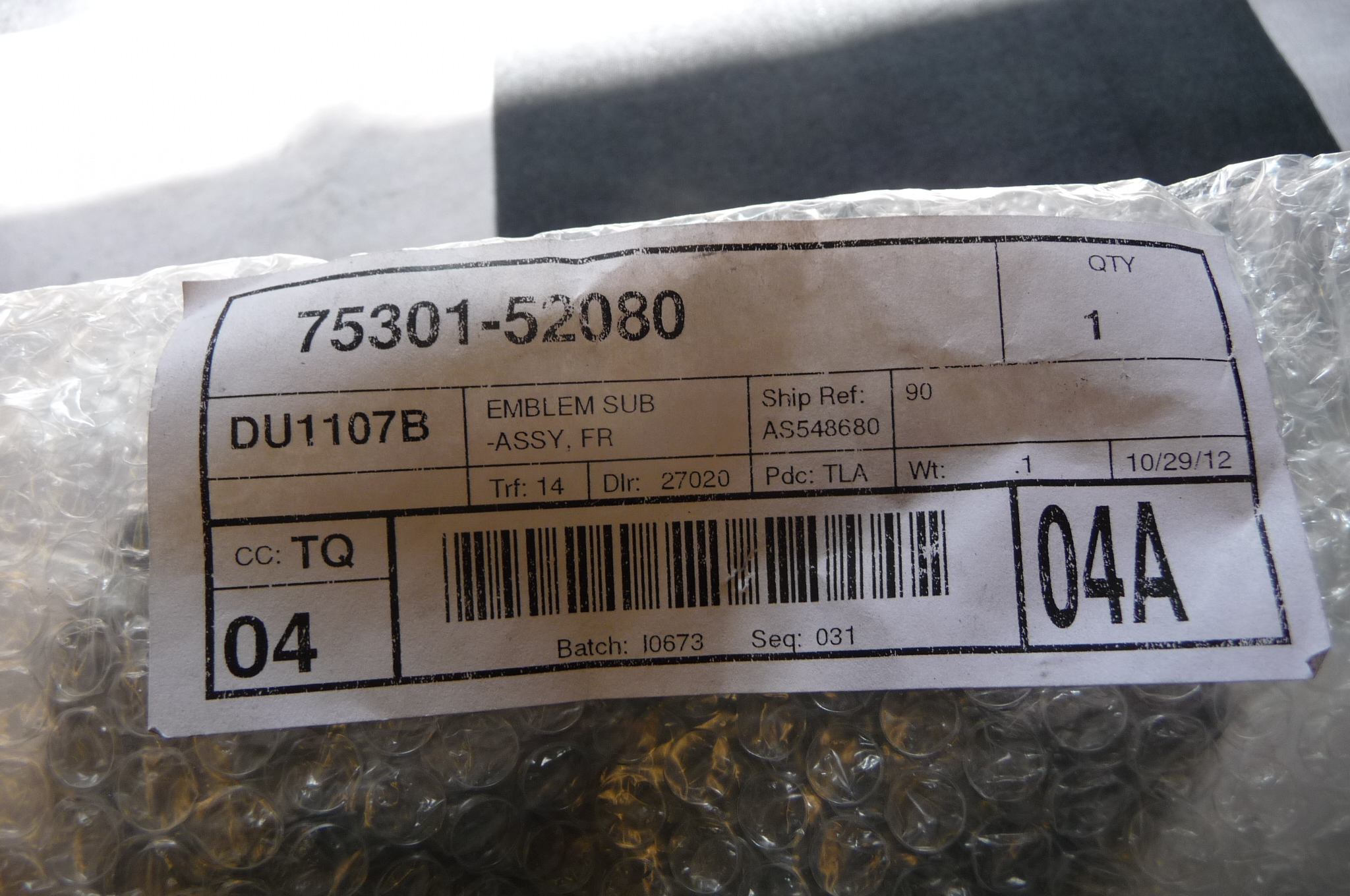 Part#: 75301-52080; 7530152080