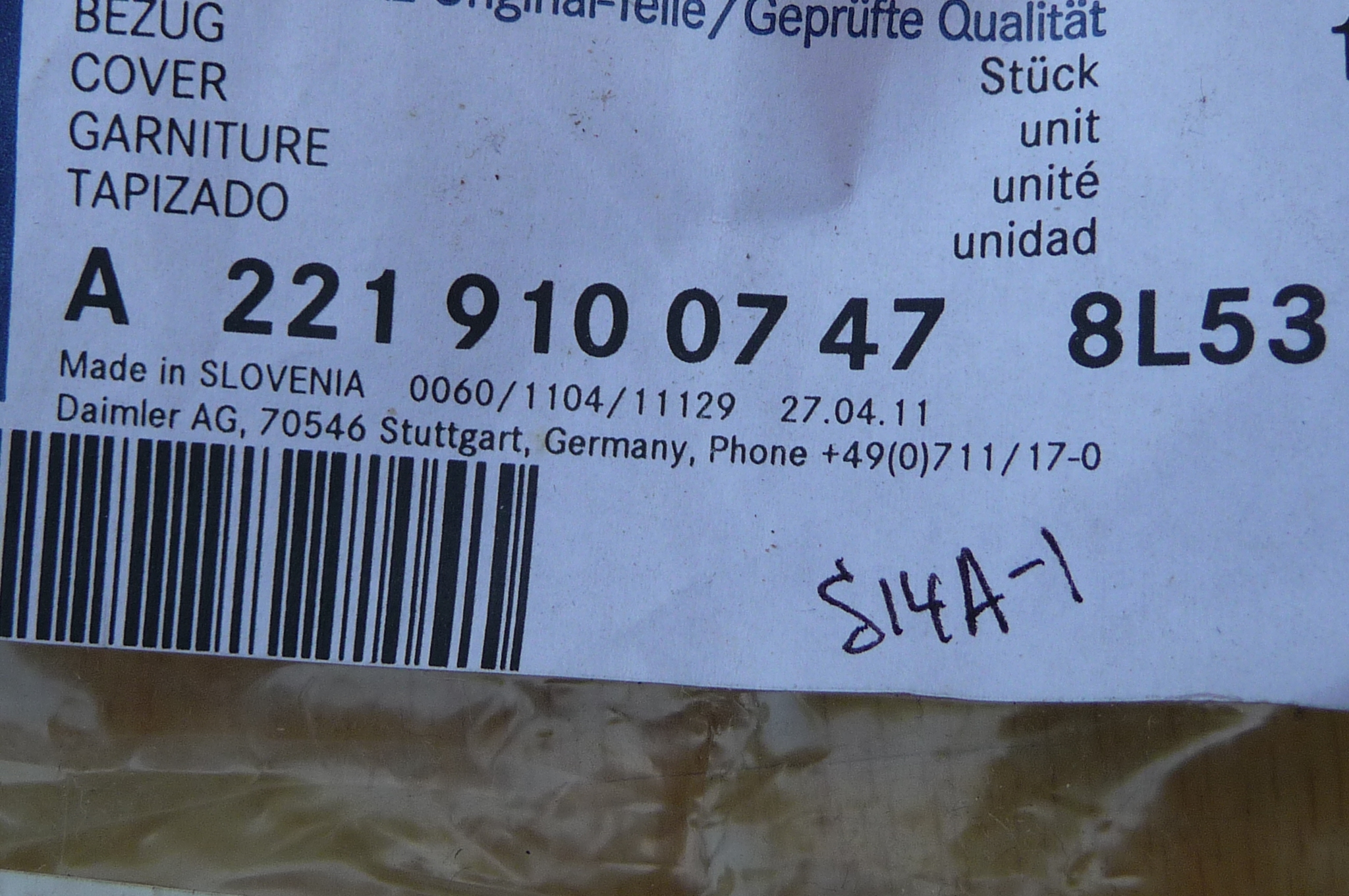 Mercedes Benz W221 Driver Seat Cover Leather S Class 2007-2011 2219100947 OEM OE