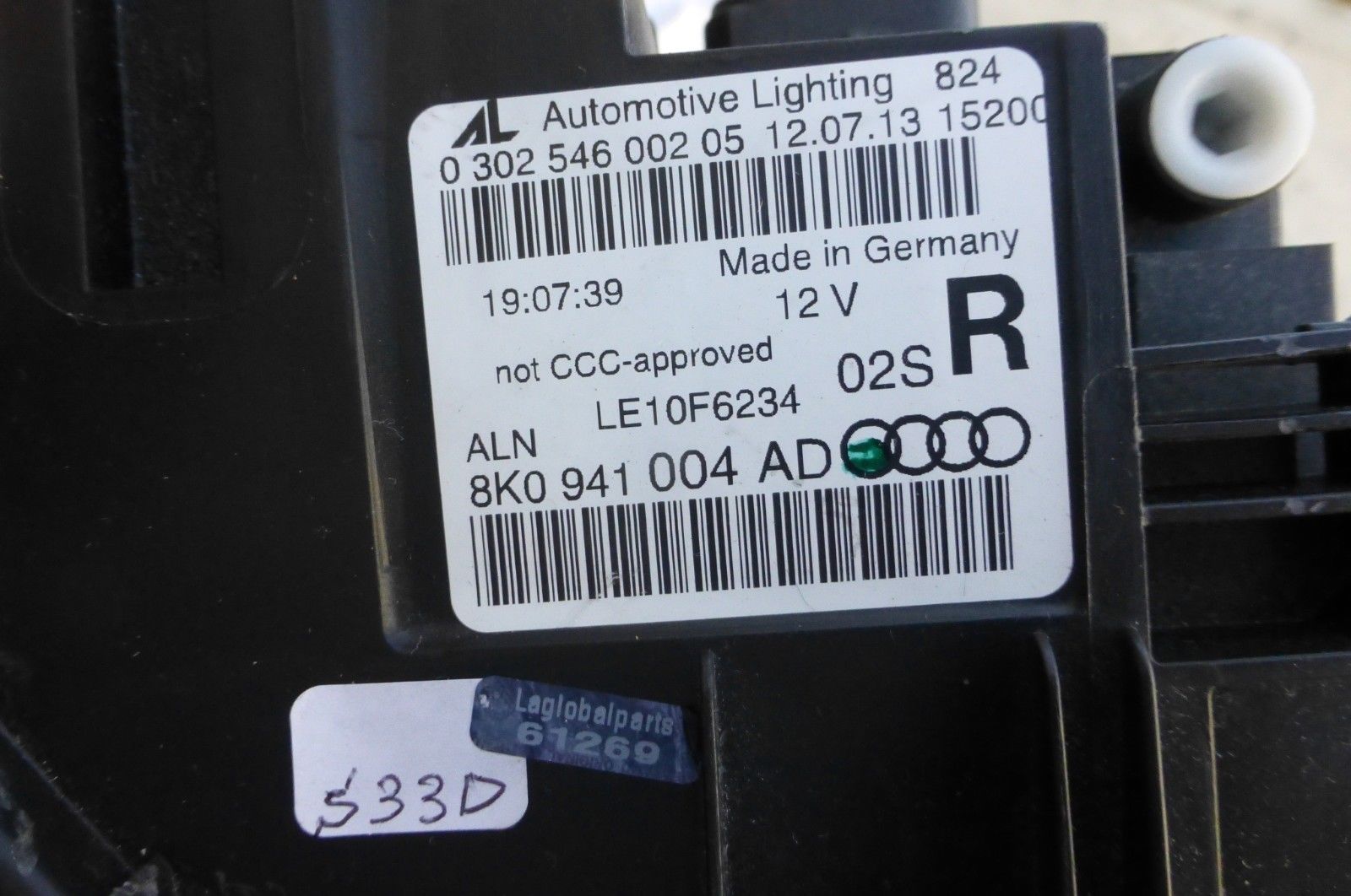 Audi A4 S4 Allroad Halogen Headlight Head Light Lamp Right Passenger Part#: 8K0941004AD OEM OE
