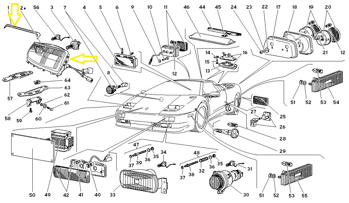 1999-01 Lamborghini Diablo Headlights right & left with Carbon Protector OEM OE