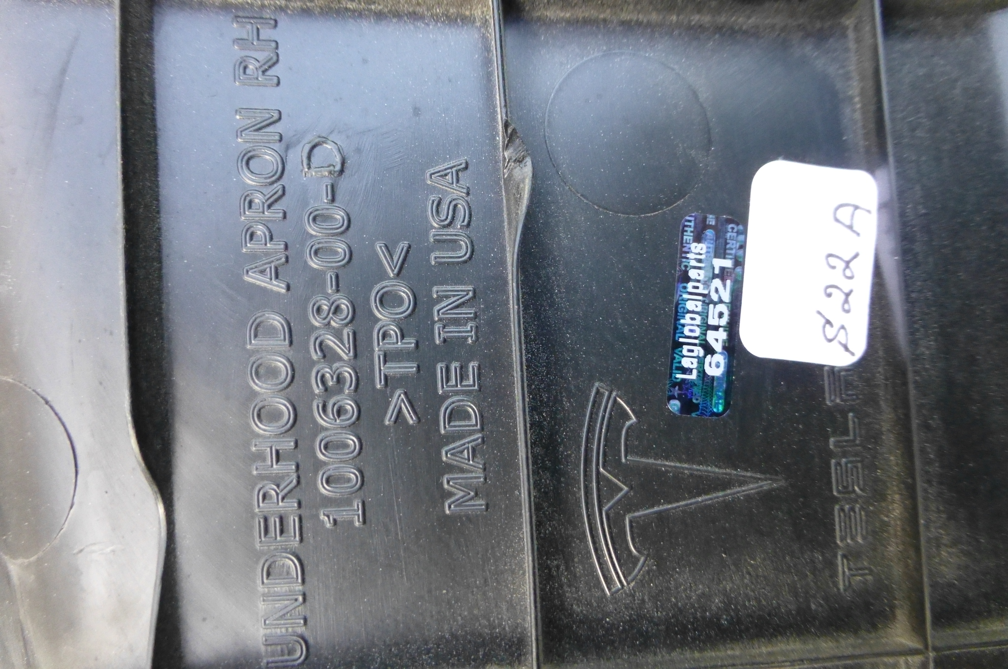 Tesla S Front Underhood Apron Right Passenger Side 1006328-00-d OEM OE