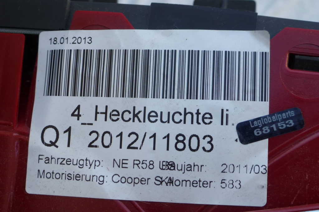 Mini Cooper Rear Left in the Side Panel Taillight Stop Turn Lamp 63217255913 OEM