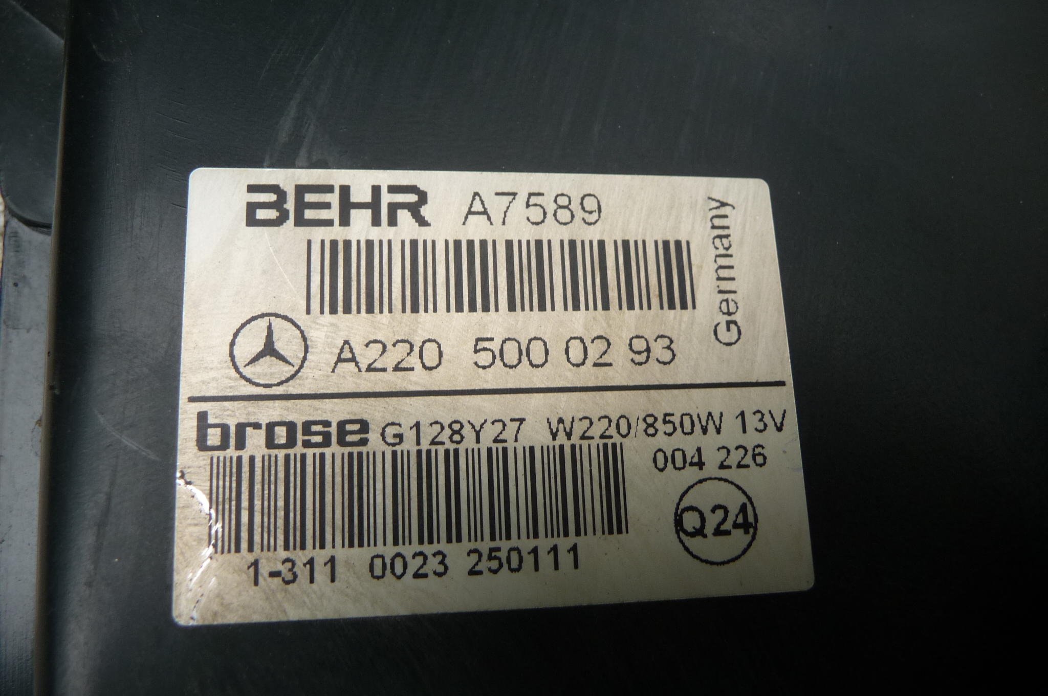 Part # 2205000293; 2205000393, Behr A7589, A2125000493