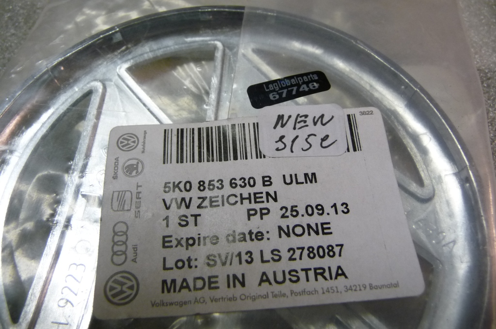 Volkswagen VW Rear Trunk Lid Emblem Logo Badge -NEW- 5K0853630B OEM OE
